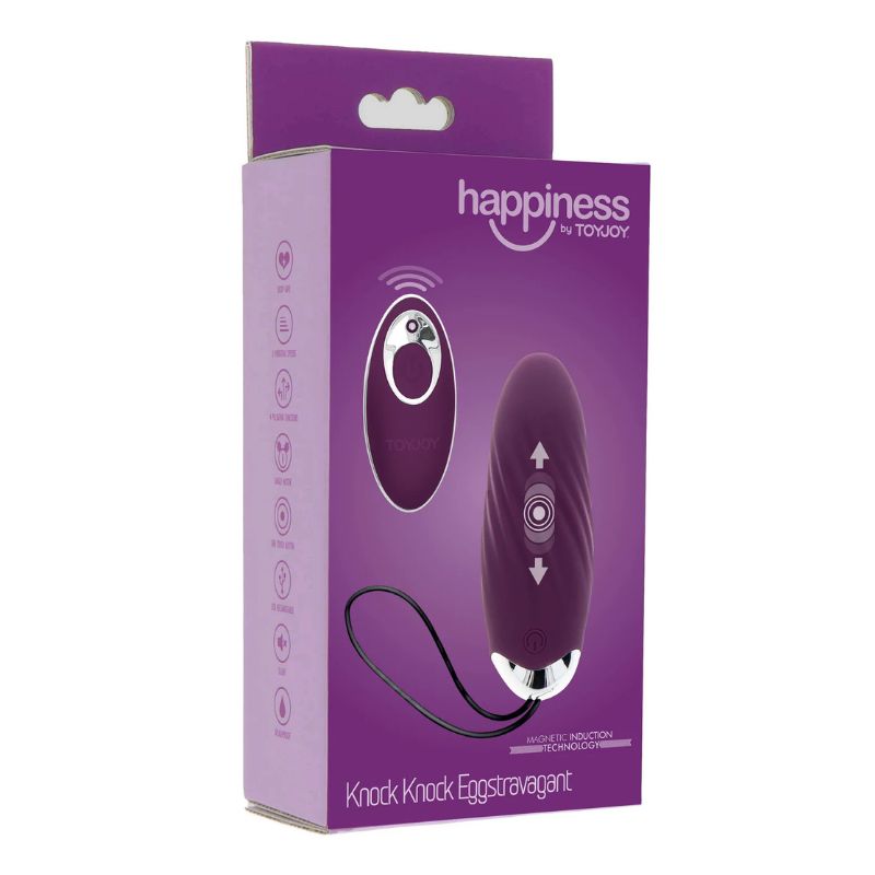 Laat je verrassen door de Knock Knock Eggstavagant uit de Happiness Collection van ToyJoy – een verfijnd en speels liefdesei dat jouw meest gevoelige zones heerlijk verwent. Dankzij de krachtige vibraties en ronddraaiende liefdeskralen geniet je van diepe, pulserende sensaties die je steeds opnieuw doen verlangen naar meer.