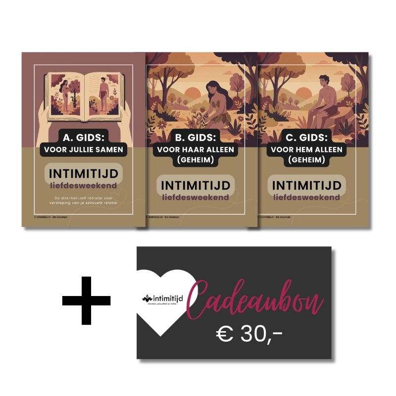 Ben je op zoek naar inspiratie en verdieping voor je seks- en liefdesleven? Stap even uit de rol van ouder, gezinsmanager of huisgenoot en wees weer even écht geliefden. Het Intimitijd Liefdesweekend is een compleet verzorgd pakket waarmee jullie, gewoon thuis of in een hotel, een weekend lang investeren in jullie relatie. Geen ongemakkelijke kringgesprekken, maar 100% aandacht voor elkaar.