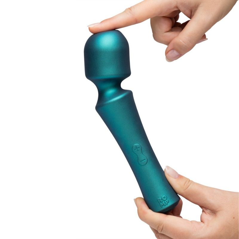 De Presto wand massager van ROMP is een prachtige, gebruiksvriendelijke massagestick met een elegante metallic uitstraling. De beweegbare, squishy siliconen massagekop voelt heerlijk zacht aan en past zich moeiteloos aan je lichaam aan, waardoor je elke zone — intiem of niet — met precisie en comfort kunt verwennen.