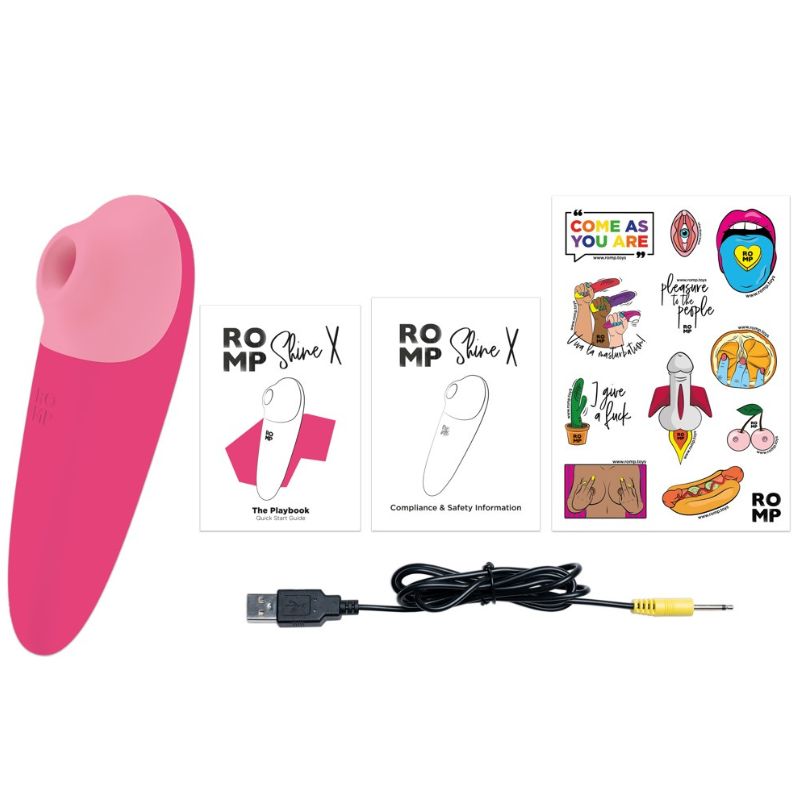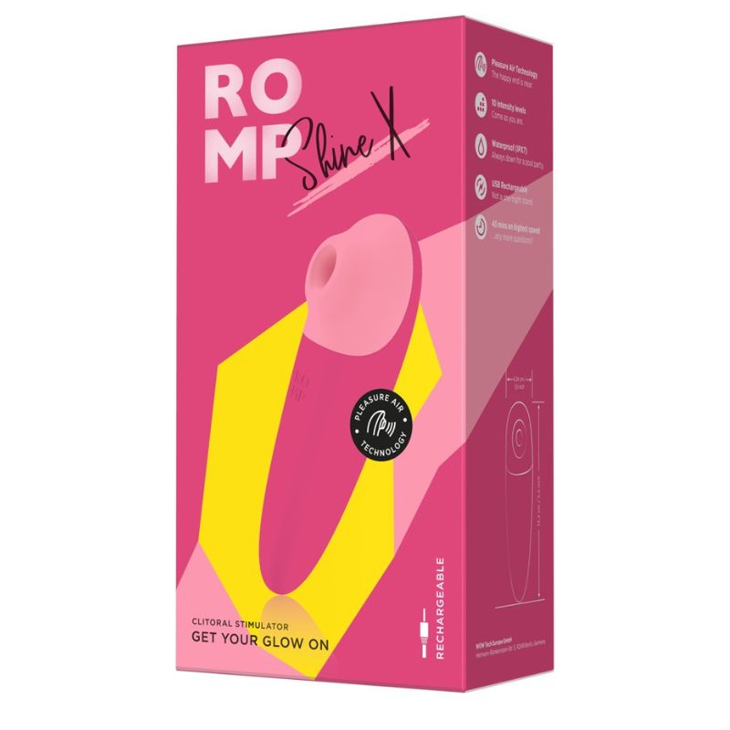 De Shine X van ROMP is een handige, stijlvolle pulsator die gebruikmaakt van de geliefde Pleasure Air™-technologie. Deze zachte, pulserende luchttrillingen stimuleren de clitoris volledig contactloos, waardoor je kunt genieten van diepe sensaties zonder risico op overstimulatie.
